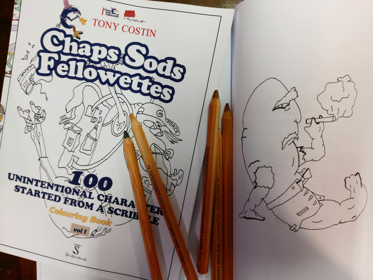 Chaps Sods Fellowettes. 100 Unintentional characters from a scribble. Artist's first drawings. By Tony Costin