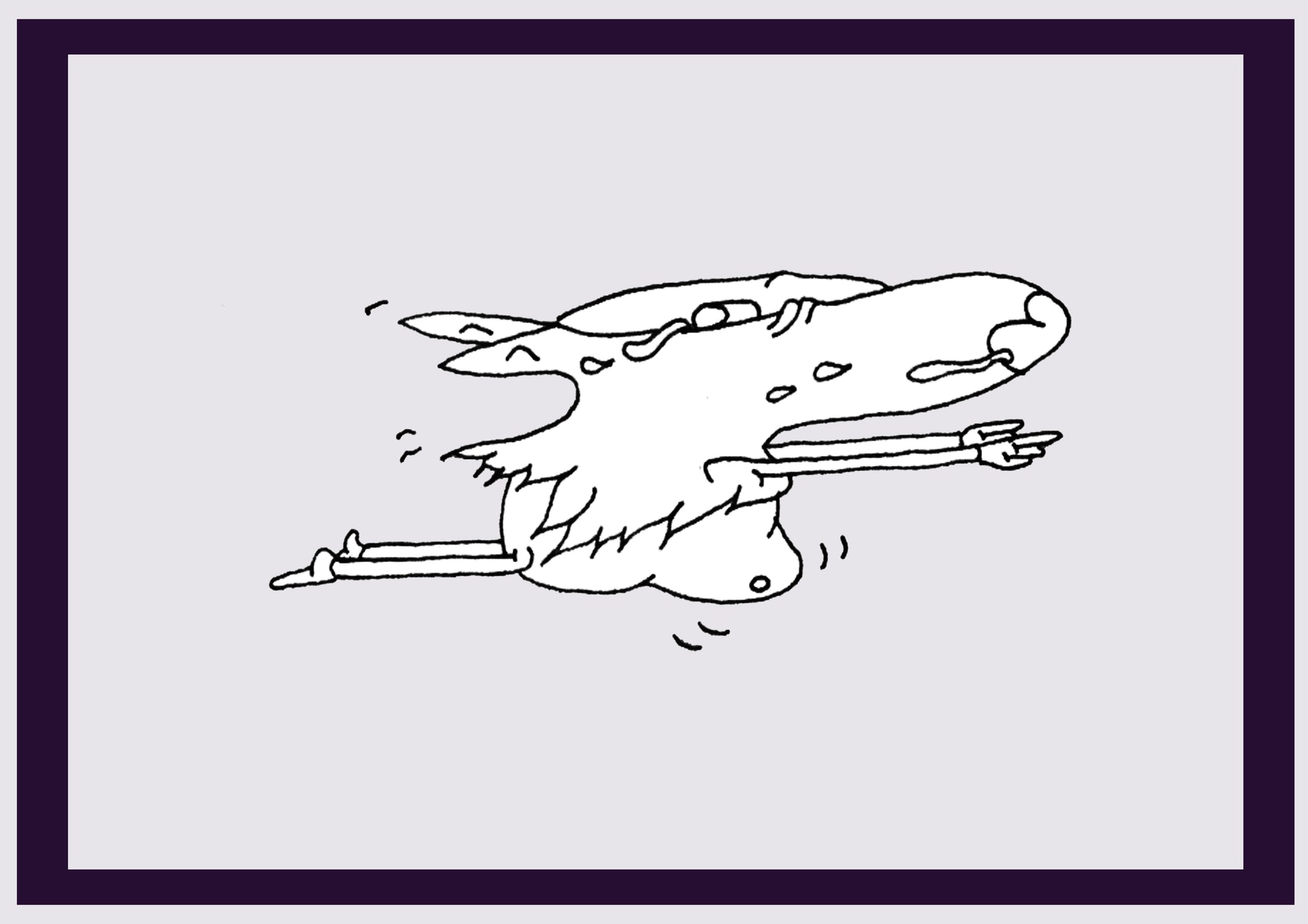 FLIEGENDER HUND. Drucken. Offene Ausgabe. Erste Zeichnungen des Künstlers. Digital verkleinert. (Ref.Og. SOR020V01. Erste Zeichnungen. Stift auf Papier)