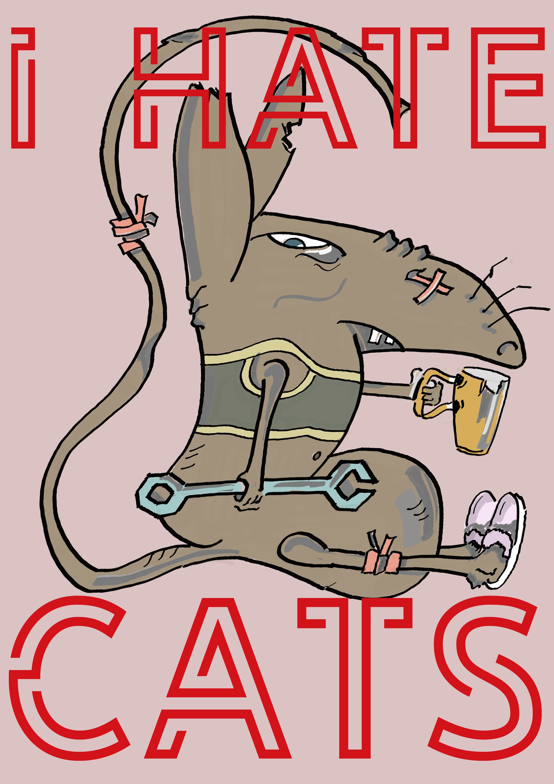ICH HASSE KATZEN. Drucken. Offene Ausgabe. Poster. (Ref.Og. SOR027V01. Erste Zeichnungen. Stift auf Papier)