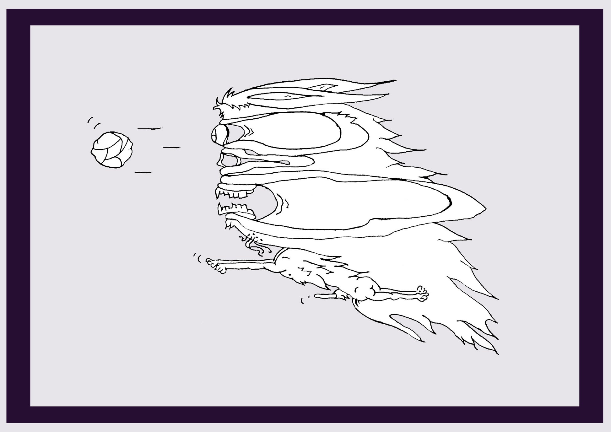 CHIEN DE BALLE. Imprimer. Édition ouverte. Premiers dessins de l'artiste. Redimensionné numériquement. (Réf.Og. SOR058V01. Premiers dessins. Stylo sur papier)