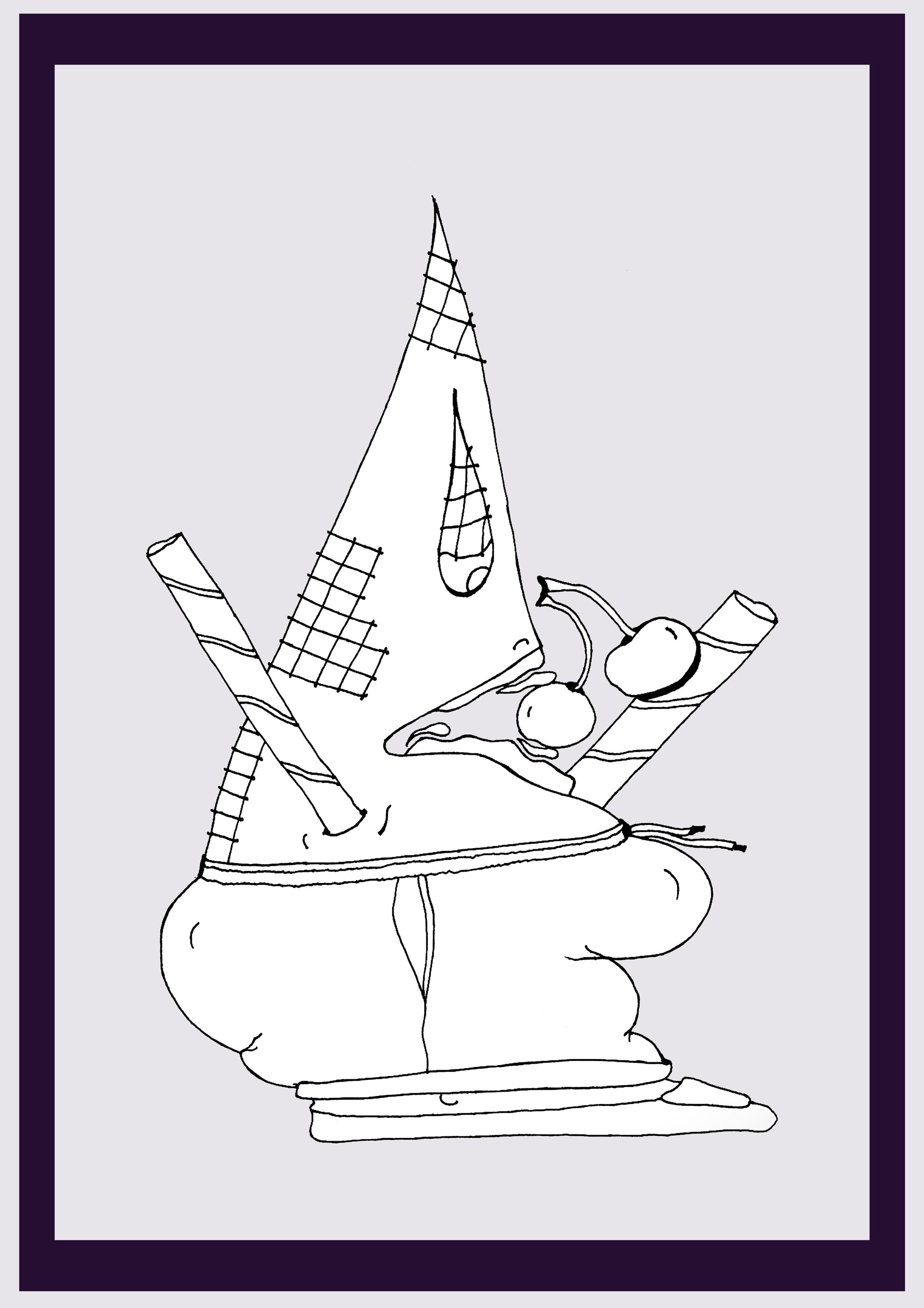 CRÈME GLACÉE. Imprimer. Édition ouverte. Premiers dessins de l'artiste. Redimensionné numériquement. (Réf.Og. SOR074V01. Premiers dessins. Stylo sur papier)