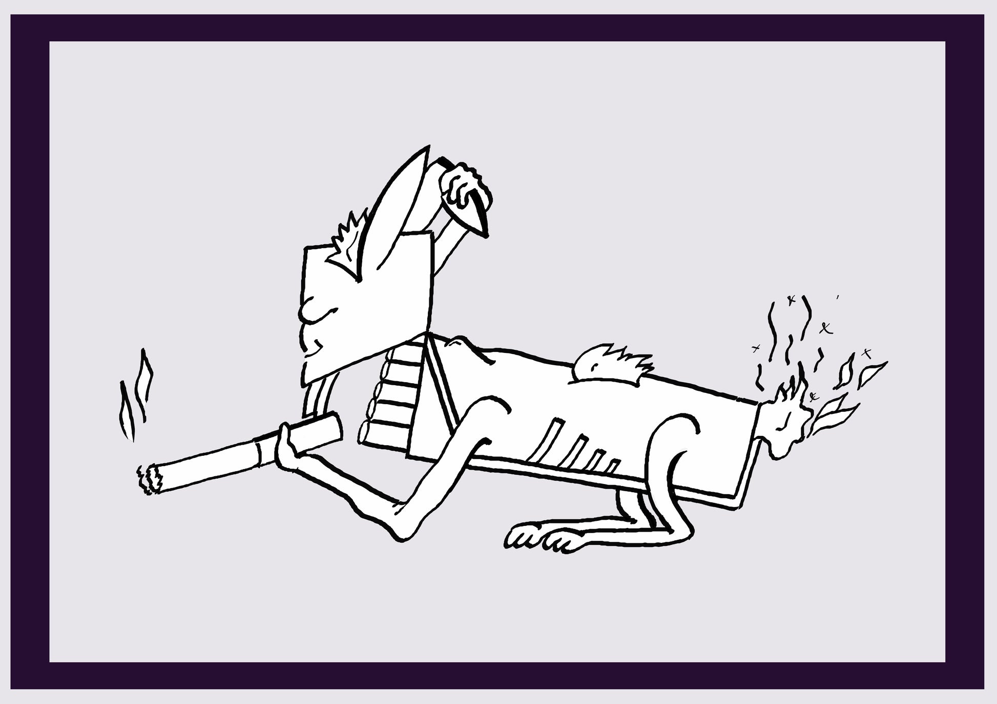 LAPIN FUMÉ. Imprimer. Édition ouverte. Premiers dessins de l'artiste. Redimensionné numériquement. (Réf.Og. SOR055V01. Premiers dessins. Stylo sur papier)
