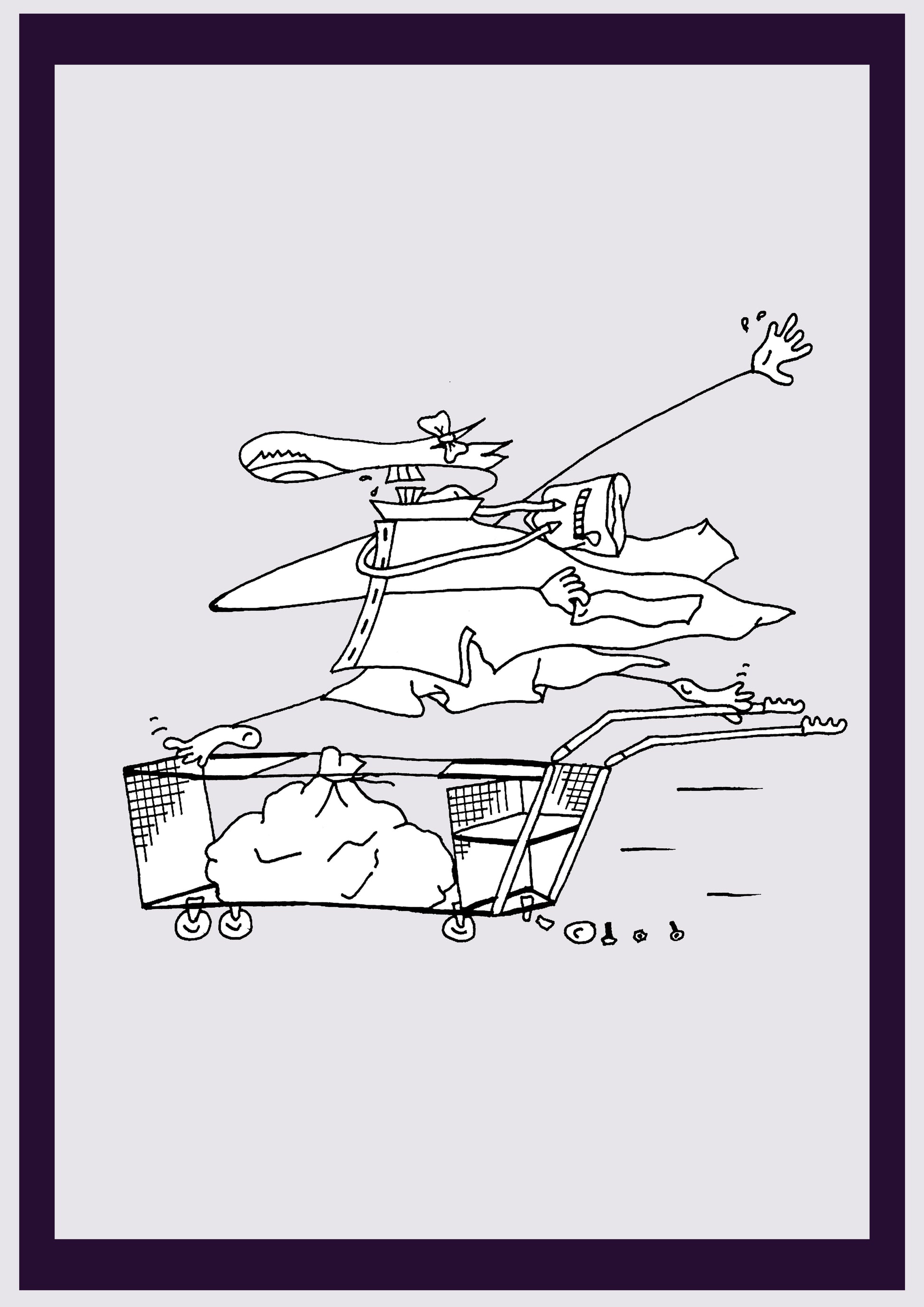 RABAIS SUPERMARCHÉ. Imprimer. Édition ouverte. Premiers dessins de l'artiste. Redimensionné numériquement. (Réf.Og. SOR134V01. Premiers dessins. Stylo sur papier)