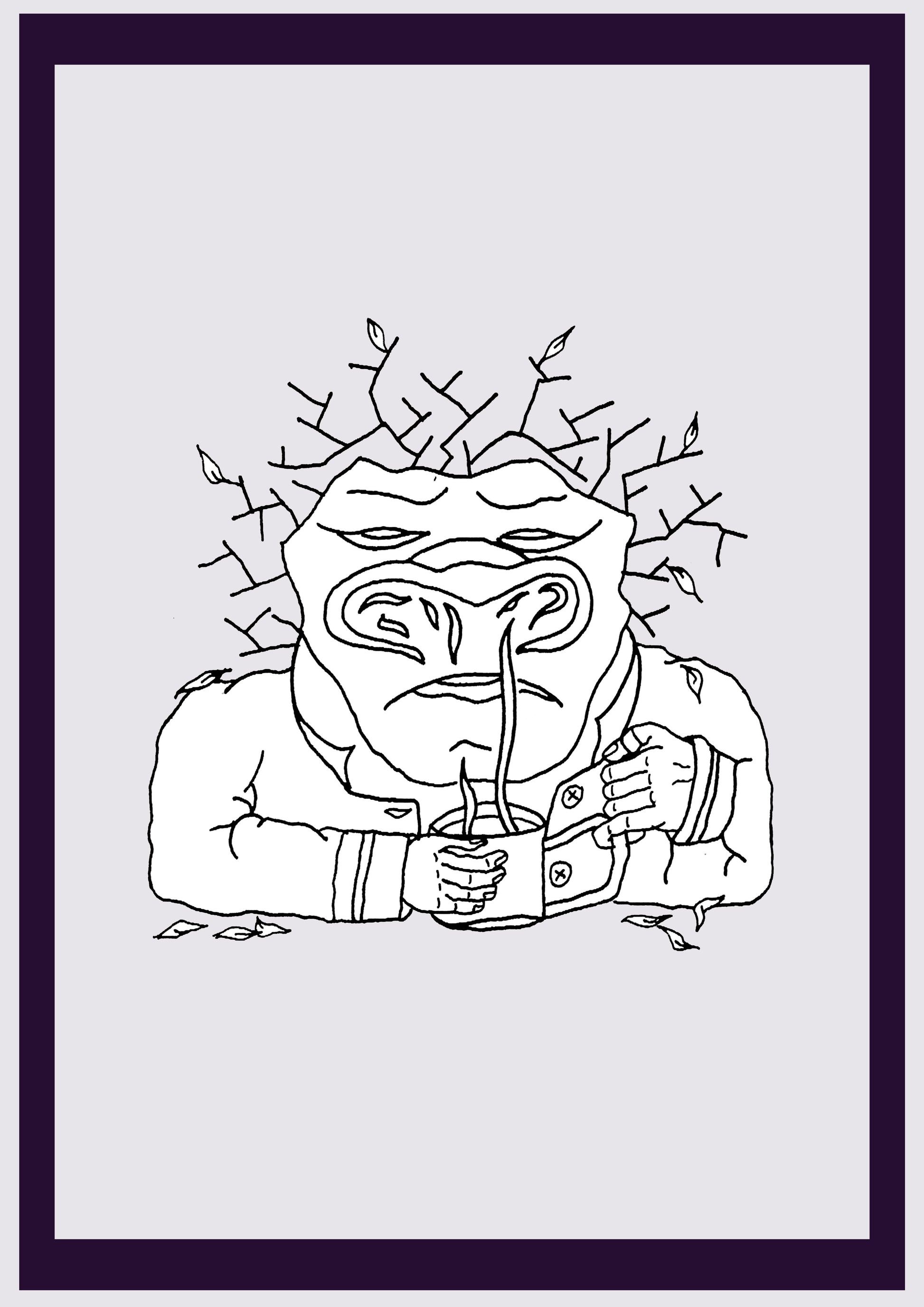 HOMME DE THÉ. Imprimer. Édition ouverte. Premiers dessins de l'artiste. Redimensionné numériquement. (Réf.Og. SOR135V01. Premiers dessins. Stylo sur papier)