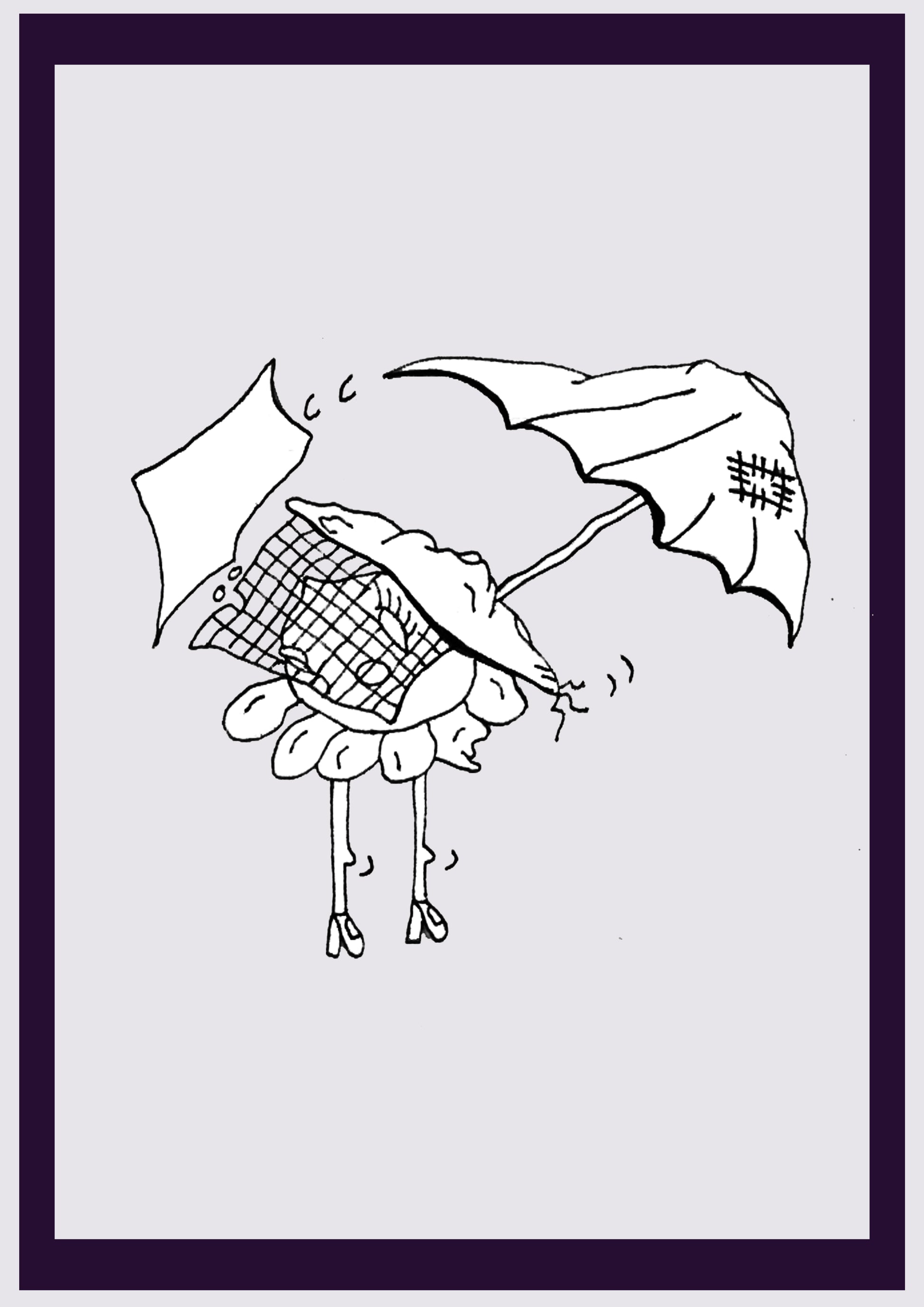 PARAPLUIE FILLE. Imprimer. Édition ouverte. Premiers dessins de l'artiste. Redimensionné numériquement. (Réf.Og. SOR046V01. Premiers dessins. Stylo sur papier)
