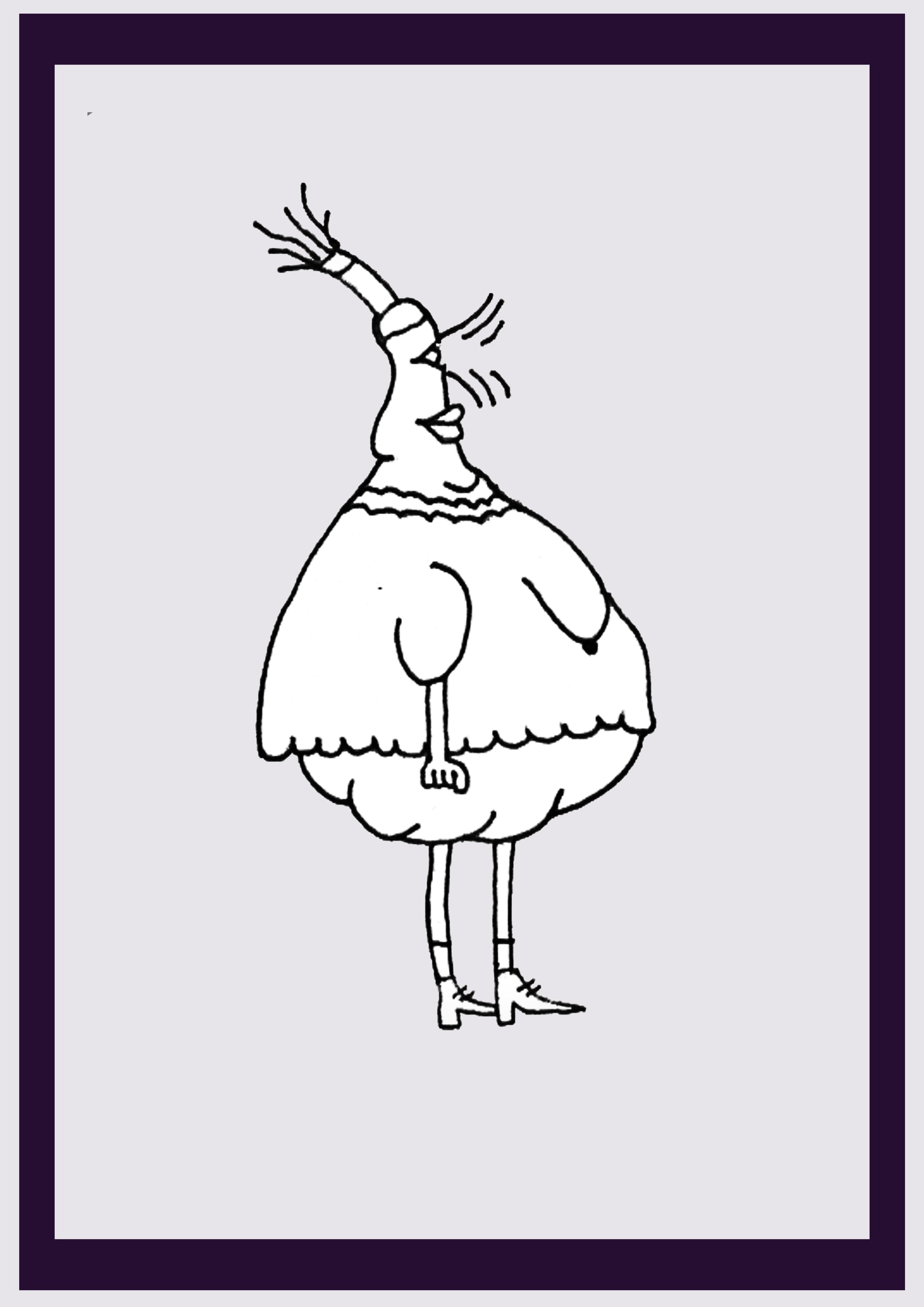 CHICKEN LADY. Print. Open edition. Artist's first drawings. Digitally resized. (Ref.Og. SOR010V01. First Drawings. Pen-on-paper)